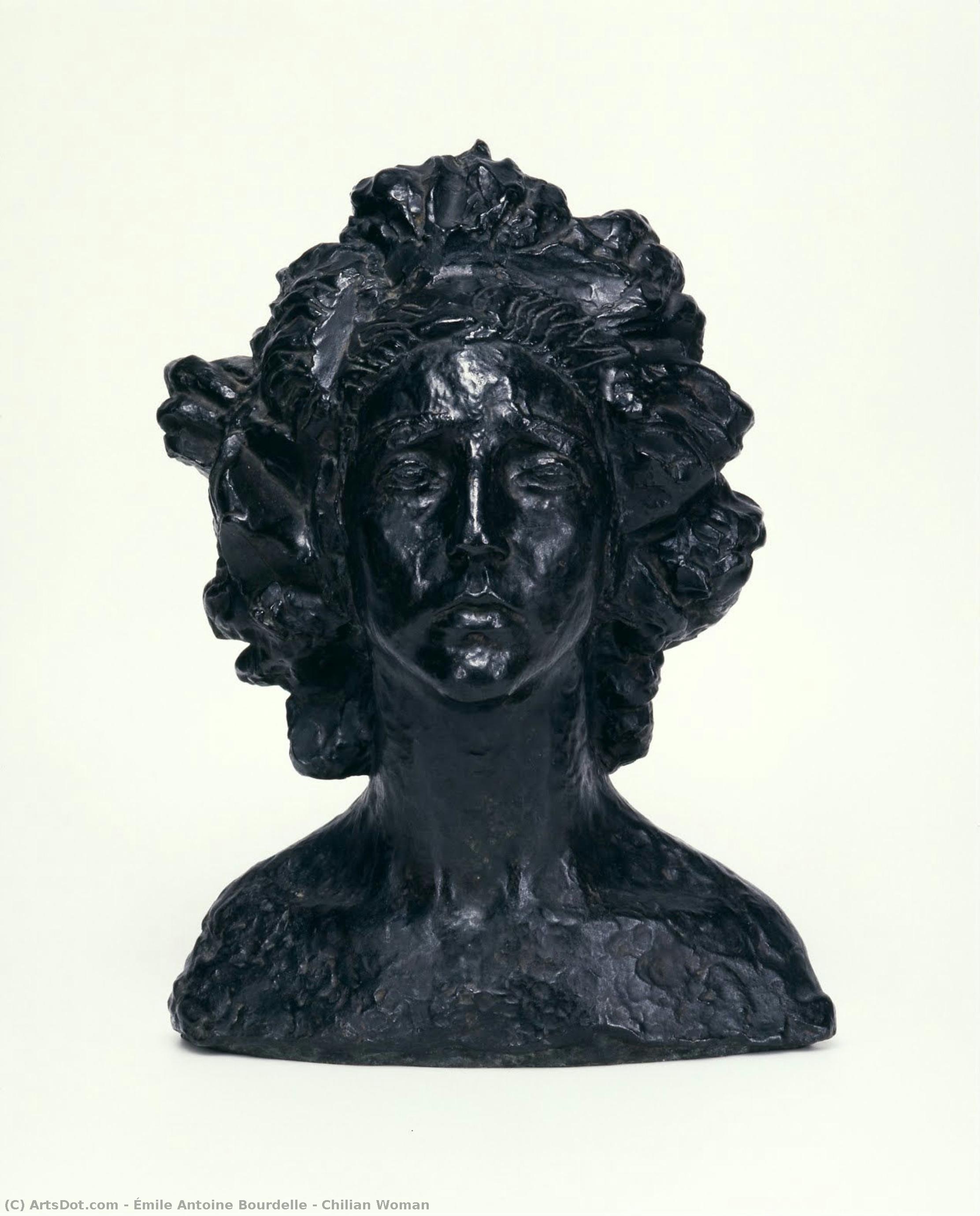 Bourdelle entered the _cole des Beaux-Arts in 1884 and studied under Alexandre Falgui_re. After working at Jules Dalou’s studio, he became an assistant to Rodin. The Head of Apollo (1900) marked his move away from Rodin’s influence towards a constructive expression overflowing with forceful vitality. He also produced many sculptures intended as monuments. This is a portrait of Mrs. Valgas, who lived in Santiago, Chile. Bourdelle made four types of works ranging from small to medium scale with this woman, who was his apprentice, as the model. This woman, whose plentiful hair is kept back with a band and bears sorrow on her face, is not a smooth elegant form but treated with rough-cut modeling, which suggests an architectural constructiveness. Here, we can identify a new expression free from the traditional French sculpture until then. Whereas Bourdelle’s master Rodin gave external form to inner emotional expressions, Bourdelle tried to represent the spiritual depth of the inside through the external form of his sculptures. According to Bourdelle, what is important in sculpture is not the surface but the profound compositional force the form possesses.